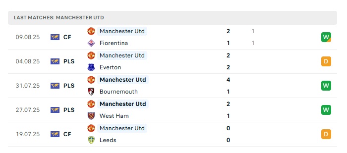 - Phong độ gần đây Man Utd