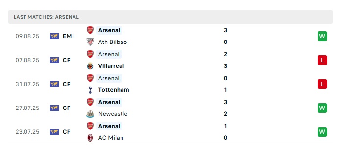 - Phong độ gần đây Arsenal