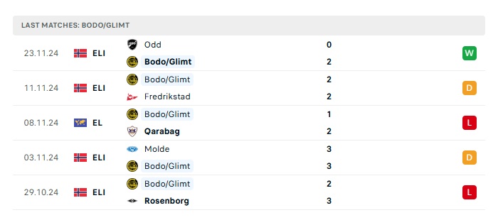 • Phong độ gần đây Bodo Glimt