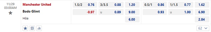 Bảng tỷ lệ kèo bóng đá Man Utd vs Bodo Glimt