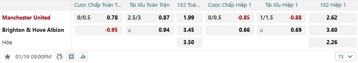 Bảng tỷ lệ kèo bóng đá Man Utd vs Brighton