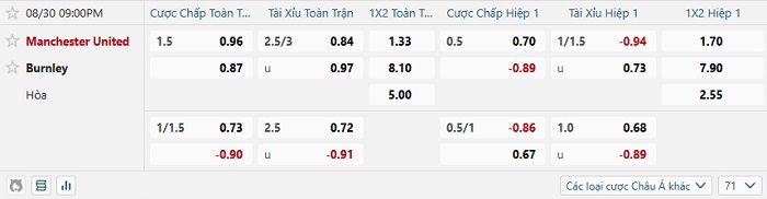 Soi kèo châu Á, kèo Man Utd vs Burnley
