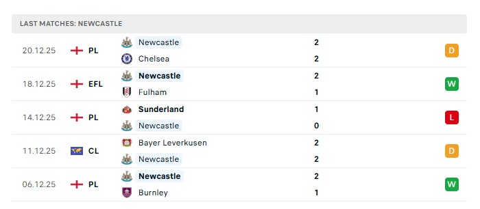 - Phong độ gần đây Newcastle