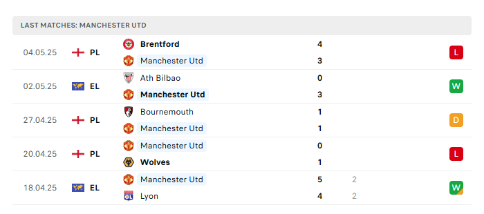 Phong độ gần đây Man Utd  vs West Ham Utd