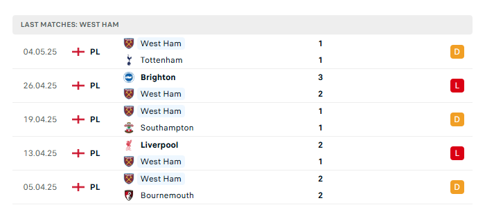 Tất nhiên, phong độ trong thời gian qua của hai đội bóng này tại Ngoại Hạng Anh là vô cùng tệ. Với Man United, họ đang có 5 vòng đấu liên tiếp không thắng với chỉ 2 trận hòa và 3 trận toàn thua. Trong khi đó thì 5 trận gần nhất của West Ham, đội bóng này chỉ hòa 1, thua 3 và thắng 1. Do đó, không có gì bất ngờ khi mà cả 2 cái tên này sẽ chia nhau 1 điểm sau 90 phút thi đấu hôm nay.