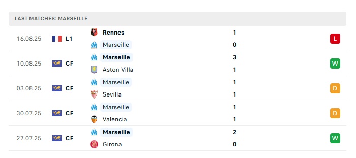 • Phong độ gần đây Marseille