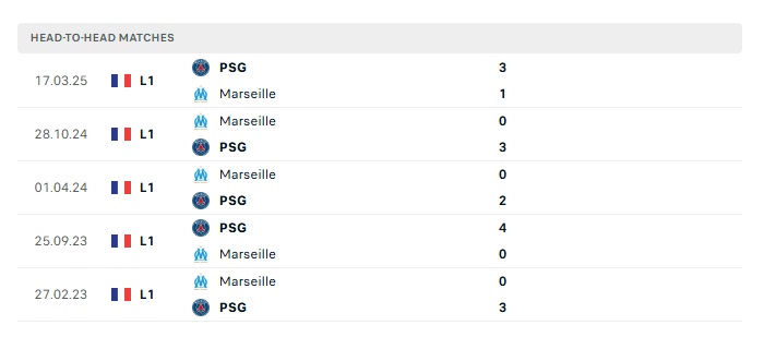 Lịch sử đối đầu Marseille vs PSG