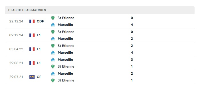 - Kèo tỷ số H2 Marseille vs Saint Etienne: 4-1