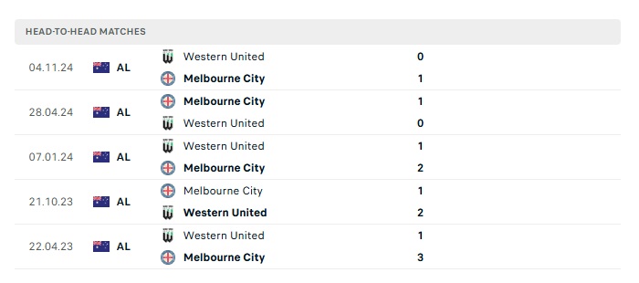 • Kèo tỷ số H2 Melbourne City vs Western United: 1-1