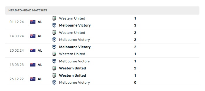 • Kèo tỷ số H2 Melbourne Victory vs Western United: 2-1