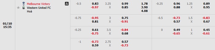 Bảng tỷ lệ kèo bóng đá Melbourne Victory vs Western United