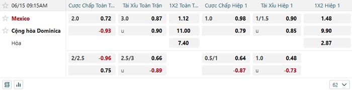 Bảng tỷ lệ kèo bóng đá hôm nay Mexico vs Dominican