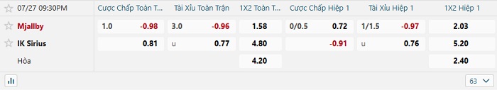 Bảng tỷ lệ kèo bóng đá hôm nay Mjallby AIF vs Sirius
