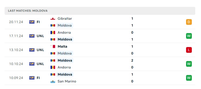 • Phong độ gần đây Moldova