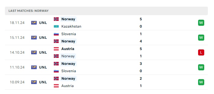 • Phong độ gần đây Na Uy