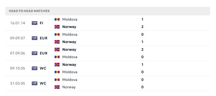Lịch sử đối đầu Moldova vs Na Uy
