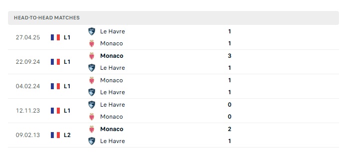 - Kèo tỷ số H2 Monaco vs Le Havre: 2-0