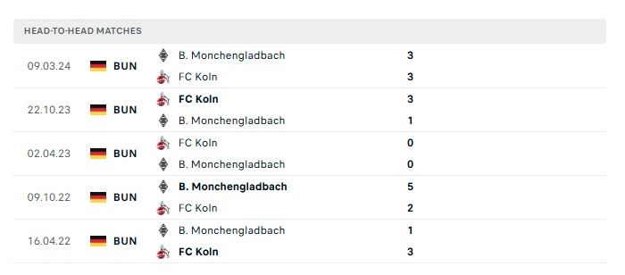 Lịch sử đối đầu Monchengladbach vs FC Koln