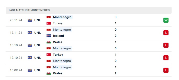 • Phong độ gần đây Montenegro