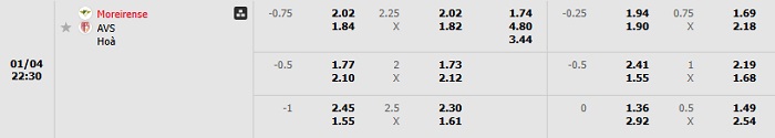 Bảng tỷ lệ kèo bóng đá Moreirense vs AVS