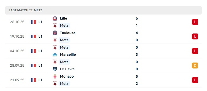 - Phong độ gần đây Metz