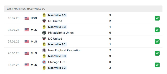 - Phong độ gần đây Nashville FC