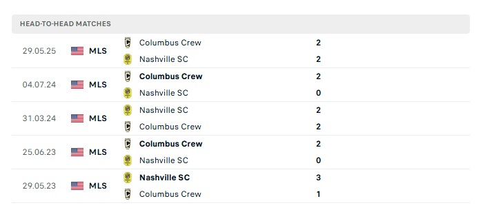 Lịch sử đối đầu Nashville FC vs Columbus Crew