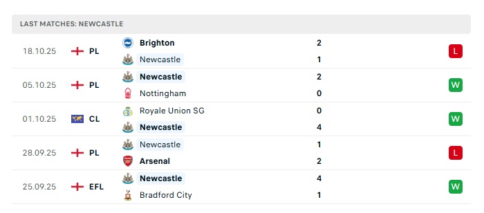 - Phong độ gần đây Newcastle