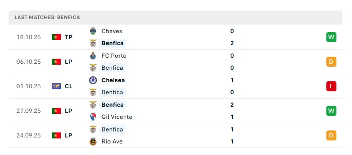 - Phong độ gần đây Benfica