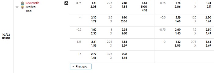 Soi kèo châu Á, kèo Newcastle vs Benfica