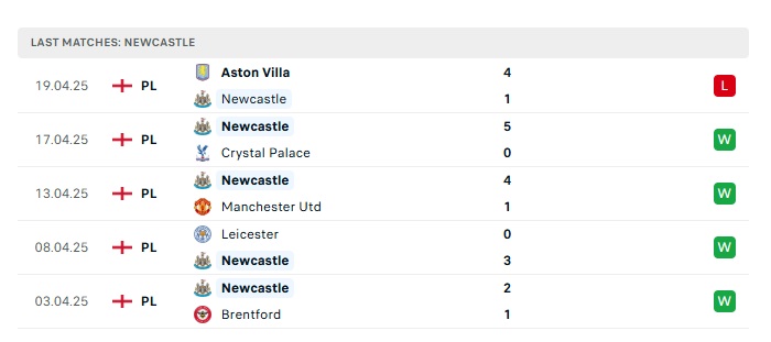- Phong độ gần đây Newcastle
