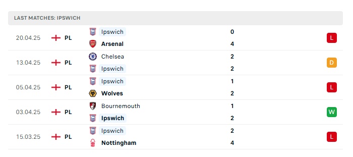 - Phong độ gần đây Ipswich