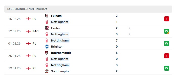 - Phong độ gần đây Nottingham Forest