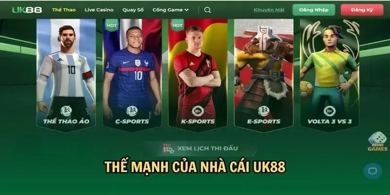 Có thể nói đây là sân chơi cá cược được đông đảo người chơi tham gia bậc nhất thị trường, đặt biệt là không khí của đại tiệc bóng đá World Cup vừa qua. Tại UK88 cũng cung cấp cho người chơi hàng ngàn trận đấu cá cược thể thao diễn ra hàng ngày, với những phương thức cá cược quen thuộc như kèo nhà cái, kèo 1×2, kèo tài xỉu, phạt góc hay thẻ phạt….