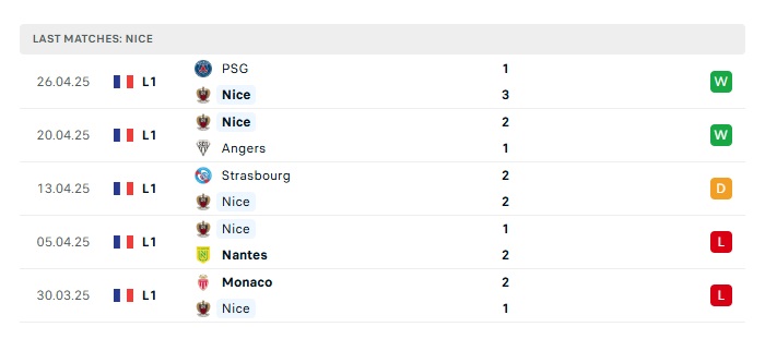- Phong độ gần đây Nice