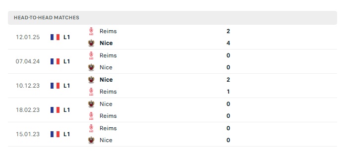 Lịch sử đối đầu Nice vs Stade Reims