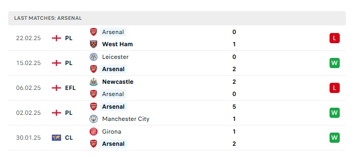 - Phong độ gần đây Arsenal