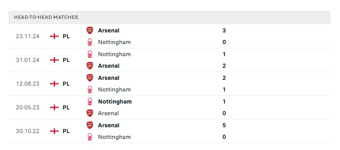 Phong độ gần đây Nottingham Forest vs Arsenal