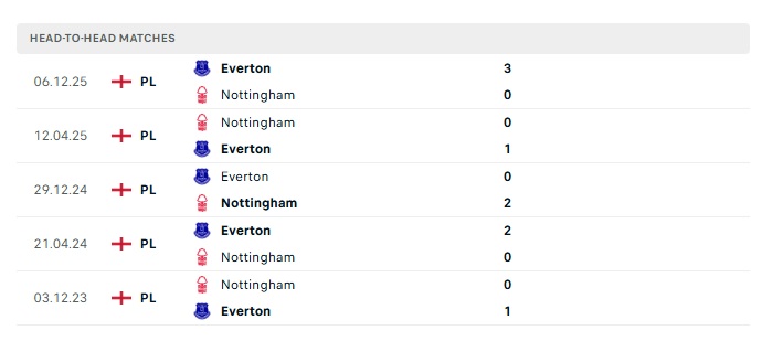 Lịch sử đối đầu Nottingham Forest vs Everton