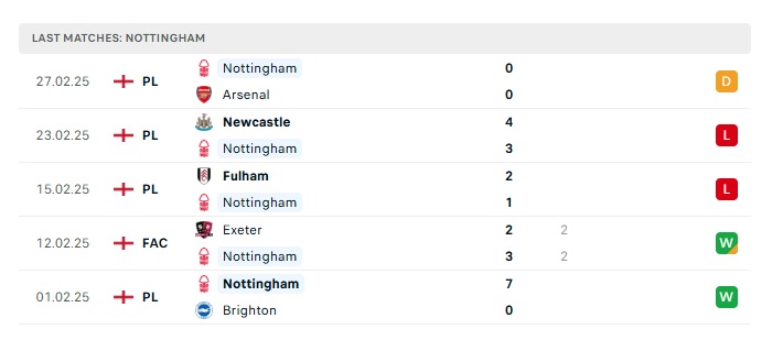 - Phong độ gần đây Nottingham Forest