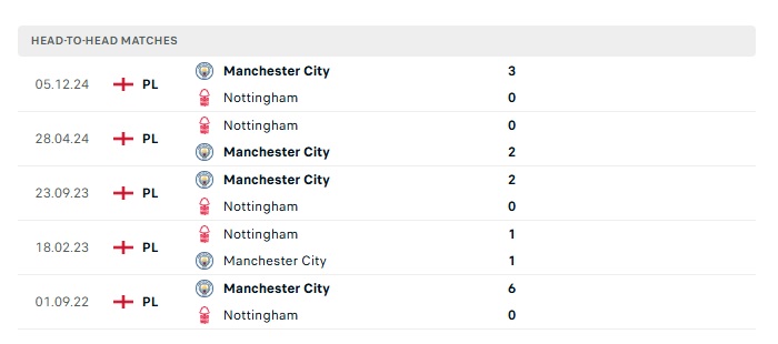 Phong độ gần đây Nottingham Forest vs Man City