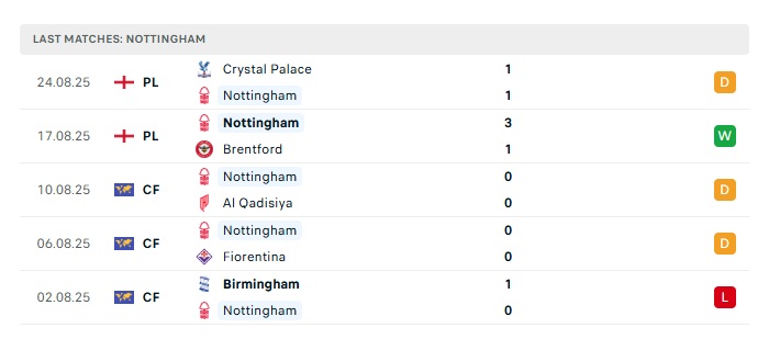 - Phong độ gần đây Nottingham Forest