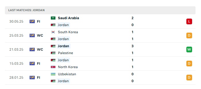 Phong độ gần đây Oman vs Jordan