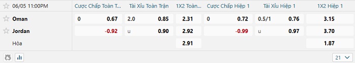 Soi kèo châu Á, kèo Oman vs Jordan