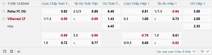 Soi kèo châu Á, kèo Pafos FC vs Villarreal