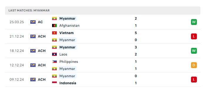 Tính trong thời gian vừa qua, phong độ thi đấu của Pakistan cũng vô cùng tệ hại so với Myanmar. Cụ thể hơn thì Myanmar đã có 2 chiến thắng, 1 hòa và 2 thua trong 5 trận đấu gần đây nhất. Về phần Pakistan, họ lại đang không thắng trong 7 trận liên tiếp gần nhất với kết quả toàn thua. Thế nên, không có gì bất ngờ nếu như đội khách có 3 điểm trong ngày hôm nay.