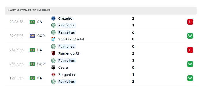 • Phong độ gần đây Palmeiras