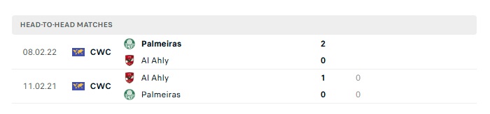 Lịch sử đối đầu Palmeiras vs Ahly Cairo