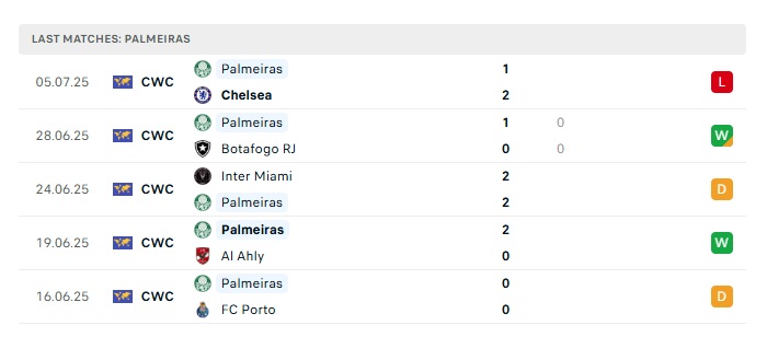 - Phong độ gần đây Palmeiras