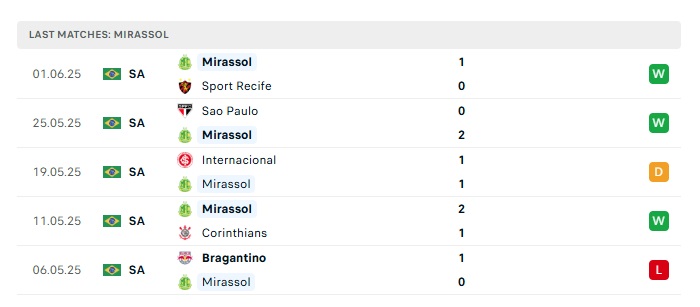 - Phong độ gần đây Mirassol